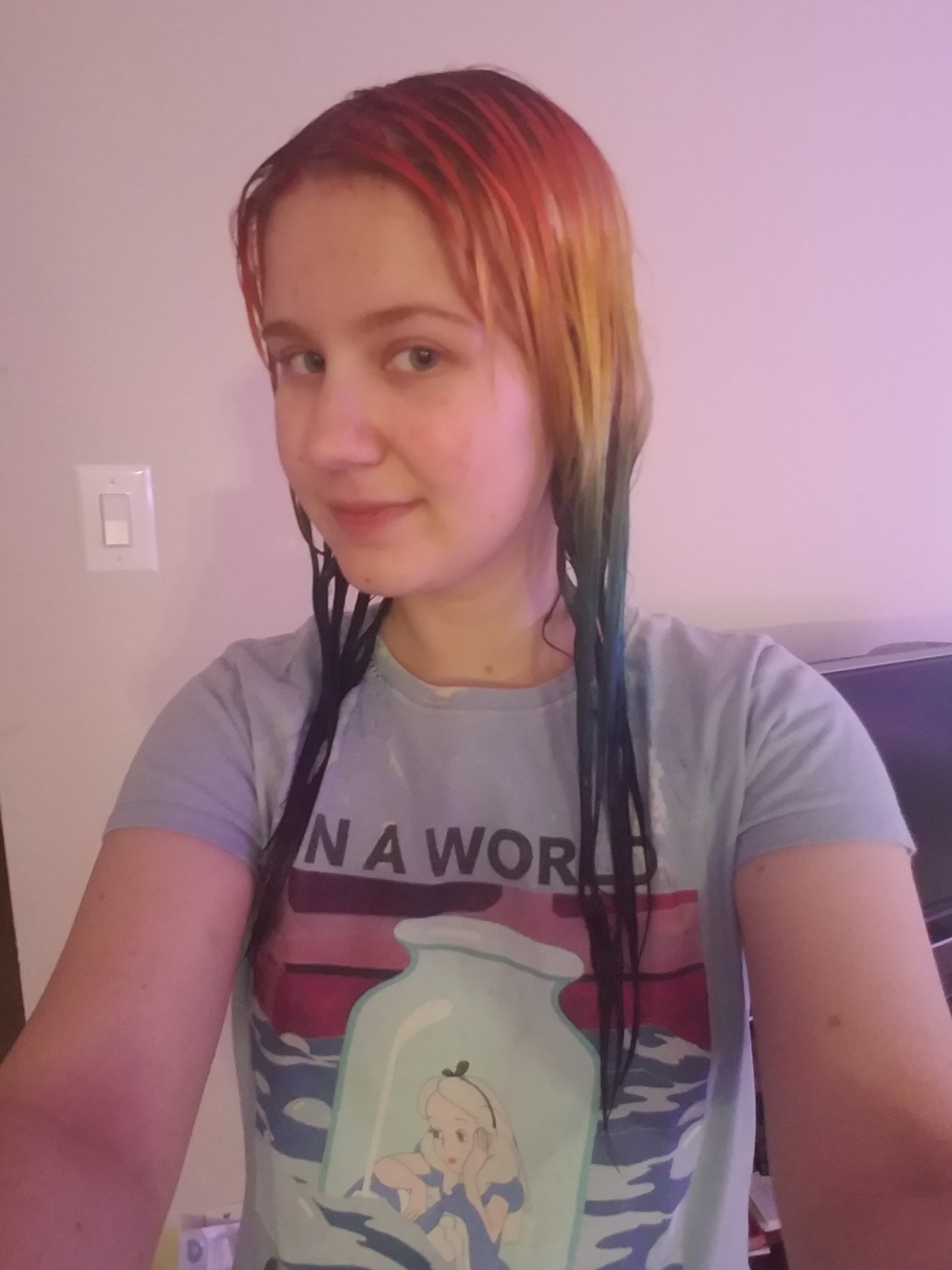 I dyed my hair rainbow! I ordered the kit from Arctic Fox and colored it myself. Now I can finally say that I have tried every single color!