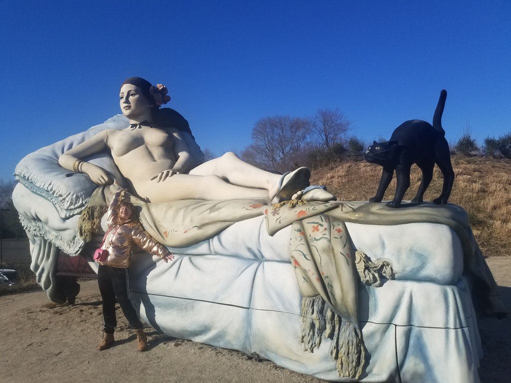 I spent the weekend with my friends Laura Sofia and Connie. Saturday, we went to a really trippy place called Grounds for Sculpture which is like a park and an art museum at the same time, but the art is very strange and random.