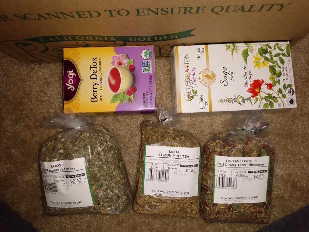 All the teas! Berry detox, sage, red raspberry leaf, lemon mint, and red clover blossoms.