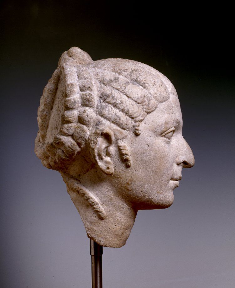 61. Cleopatra’s bravery at sea was acknowledged with a marble head found in Rome resembling her famous melon hairdo with a triangular crown.