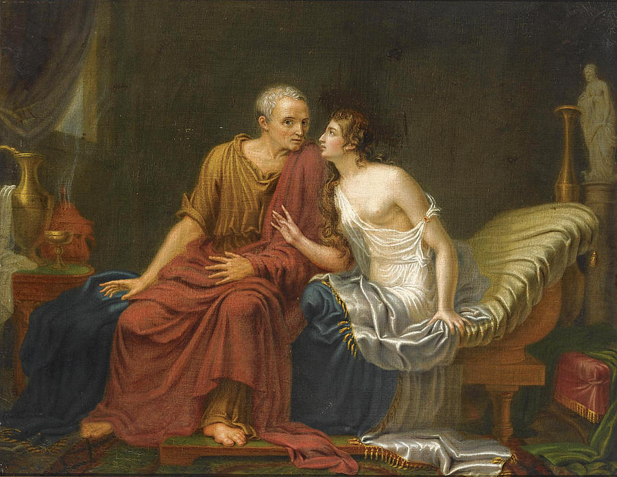92. It is quoted, ‘beating her breast with her hands, lacerating herself, and disfiguring her own face with the blood from his wounds, she called him her lord, her husband, her emperor, and seemed to have pretty nearly forgotten all her own evils, she was so intent upon his misfortunes.’ In attempt to calm her down, Antonius ordered wine from the funerary stocks, advised her to put her trust in Gaius Proculeius (one of Octavian’s staff but an honorable man), and said that he had lived a happy and honorable life.