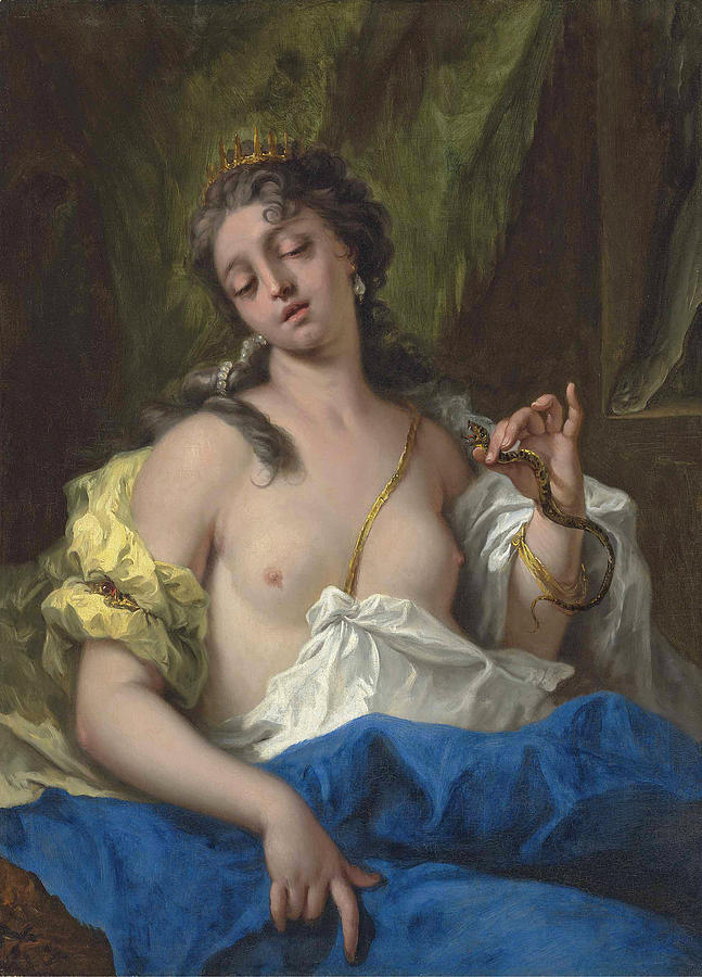 94. Cleopatra now held captive, was reported to be in extreme grief and sorrow, had ‘inflamed and ulcerated her breast with beating them’ and ‘fell into a high fever’ between 3 and 8 August, refusing all food and drink, wishing to die and asking Olympus to help her do so. In turn, Octavian threatened her children and insisted she must stay alive. For, he wanted to keep his reputation and parade her around as prisoner. Despite self-inflicted gouges, it was said ‘her appearance in mourning wonderfully enhanced her beauty.’