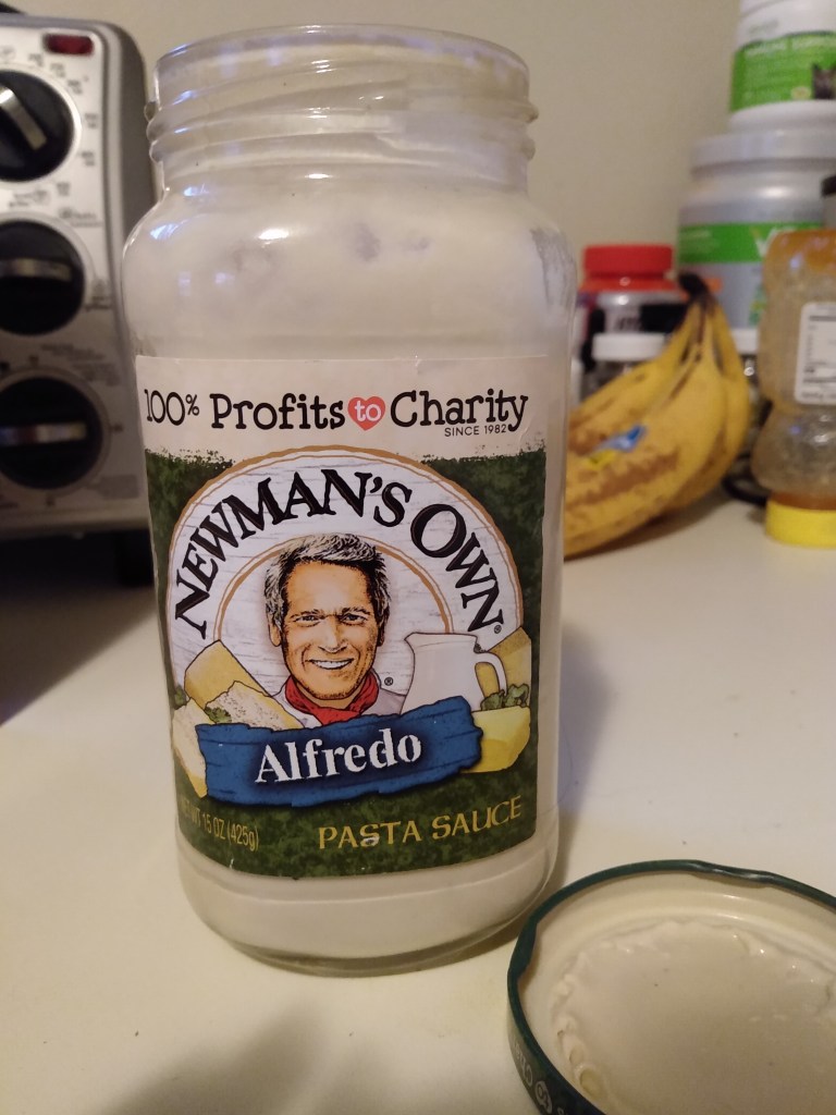 • Preferred cheese sauce (I used Newman’s Alfredo — 1/4 cup)