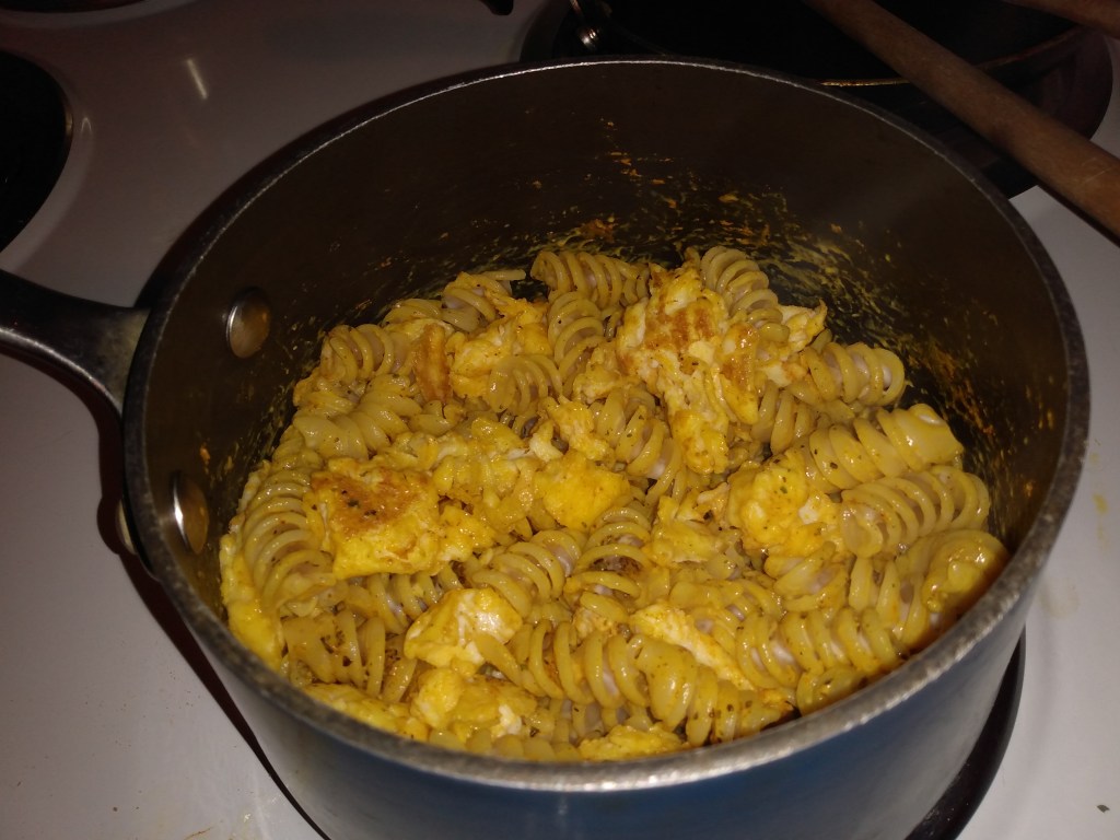 Scramble 2 eggs in the fryer while you boil your pasta.