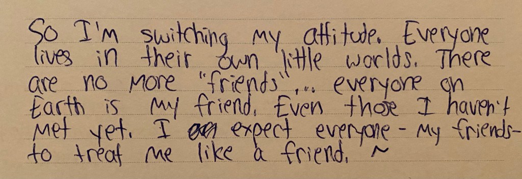 So in my last journal, I feel like I am slowly getting more into spirituality, but I keep letting myself get pulled into silly friendship drama. Let’s see where this one takes me.