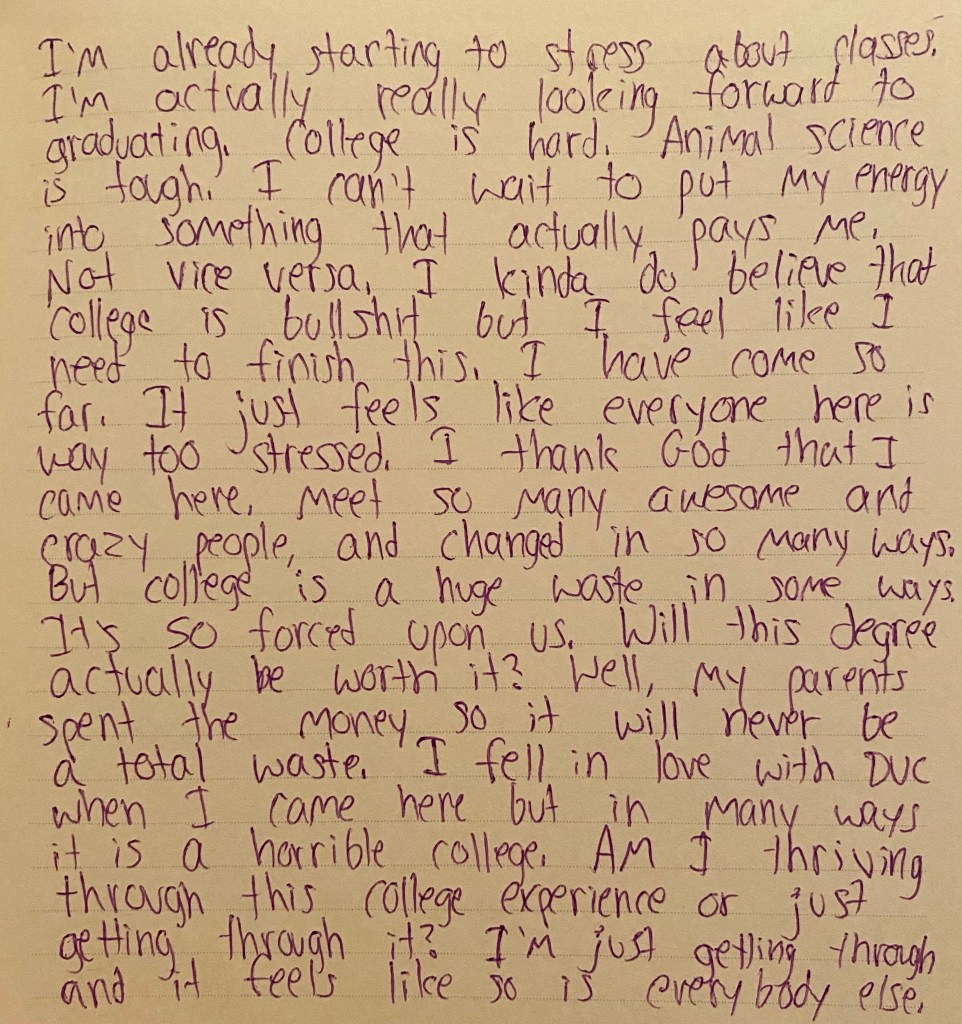 Anyway, I think I did have good friends and I miss the ones I have lost touch with. But when you spend so much time with the same people, I think you will naturally get on one another’s nerves. As much as we all got sick of each other, we would still continue to hang out and spend time with one another. I think that just happens with people. Especially during college, such a high-pressure, stressful time. I think all this venting I do in my journal is only a small part of all the fun times that were had.