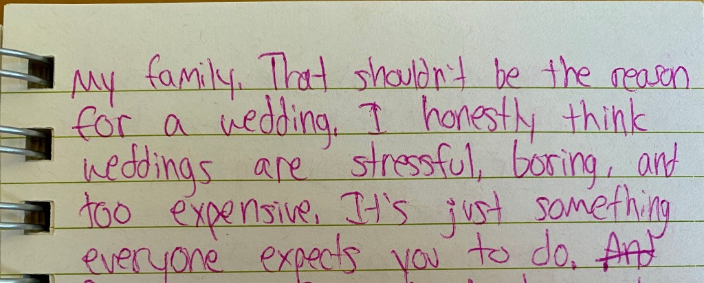 To clarify, I have been to some great weddings, especially within my own family. But this is me speaking from a personal viewpoint for myself.