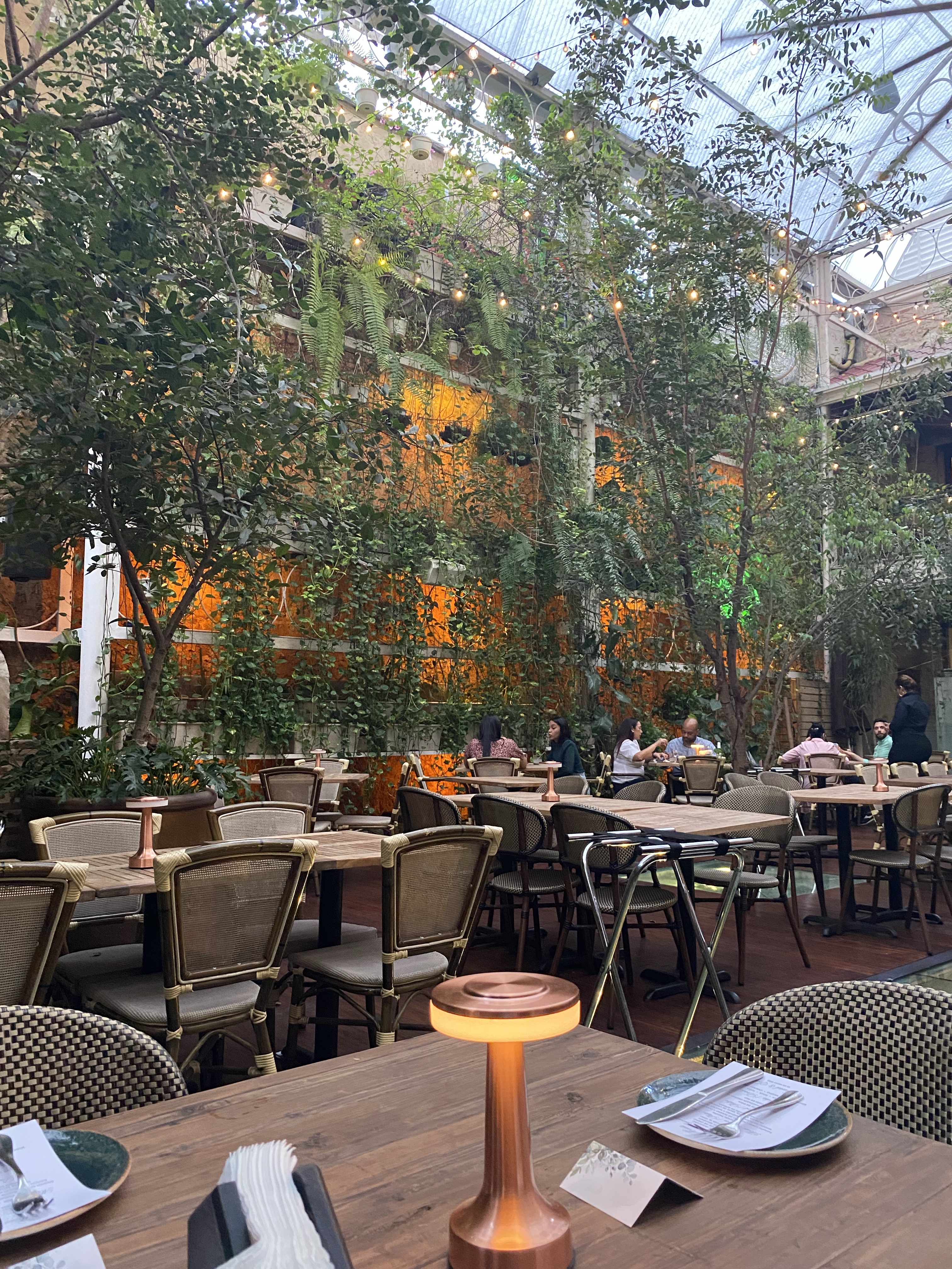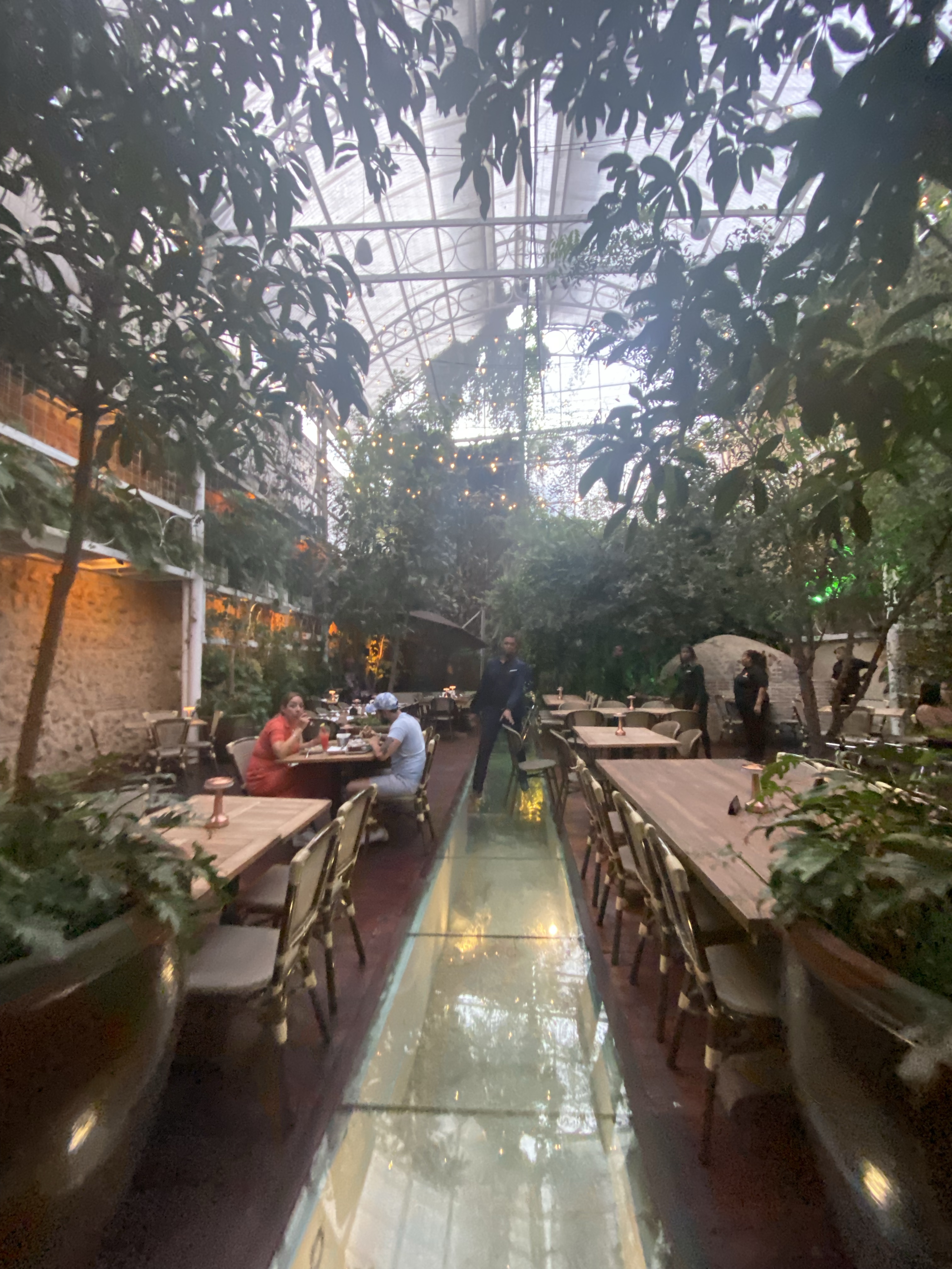 The restaurant was so beautiful, with all of these leaves and plants hanging over the ceiling and walls. We were there from daylight to sunset, and it certainly looks different comparing evening to night!