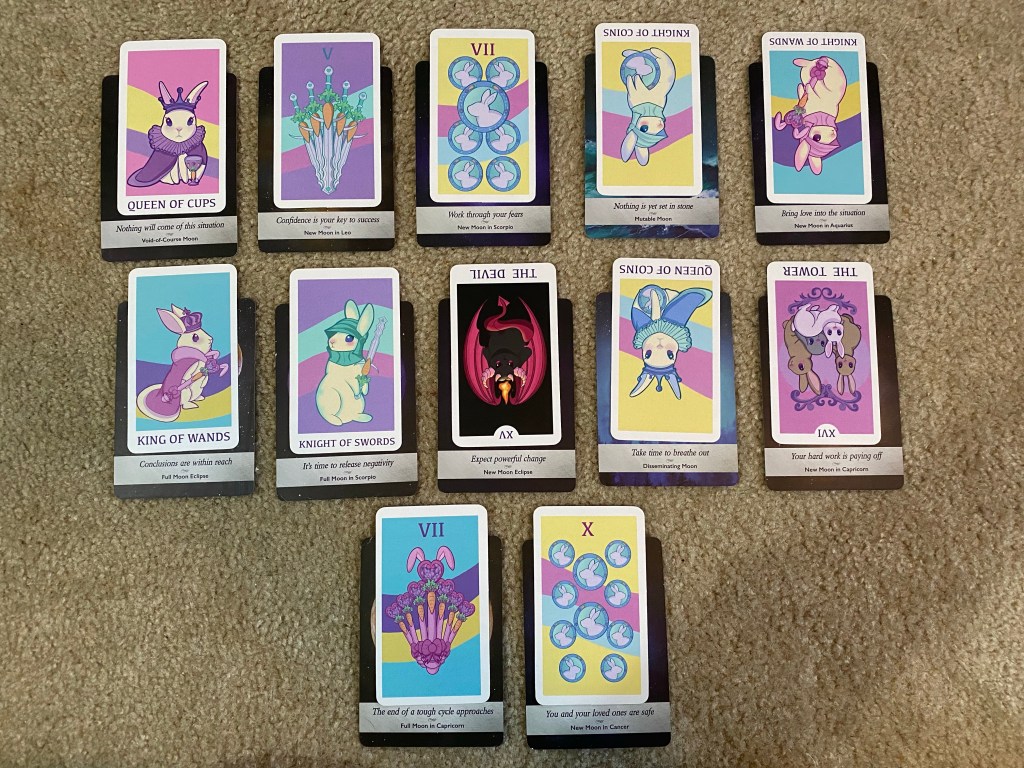 Last year’s tarot spread ended up being scarily accurate. I had no idea what to expect — I thought everything would remain the same in regards to both romance and career. But the cards told me that a very new beginning was coming — an emphasis on “pentacles” which symbolizes either work or a committed partnership. There were also many major arcanas, which told me that something very significant and fated was happening. I ended up getting a new job!