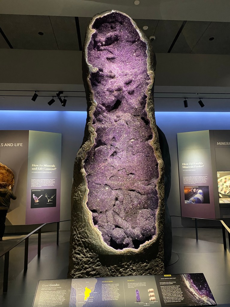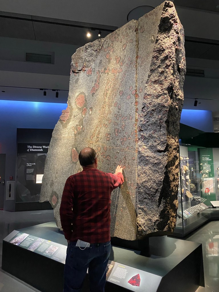 On Friday, Dad drove us back into the city again to spend the day at the American Museum of Natural History. Here is he touching a gemstone — he always has to touch everything! I said, Dad, are we allowed to touch that? He said, yeah, I’m sure!
