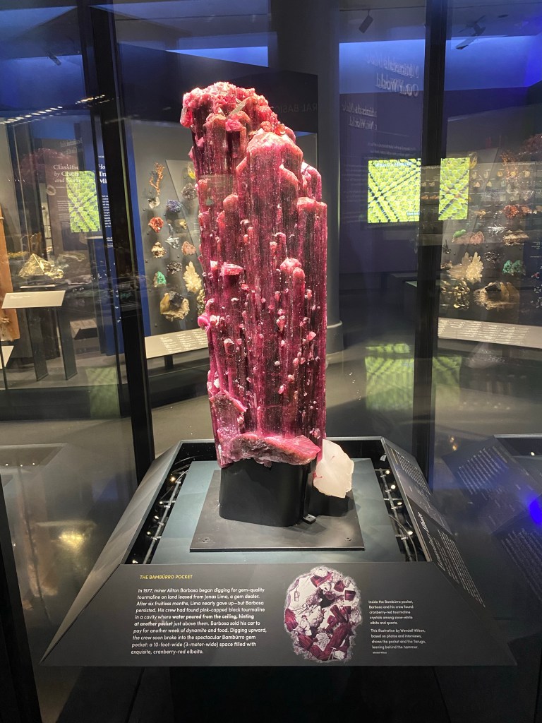 The first thing we saw was the gemstone exhibit, and that was my favorite! There were so many different crystals and stones. It was really beautiful to see. I especially loved the gigantic ones! It was also cool to learn all about them.
