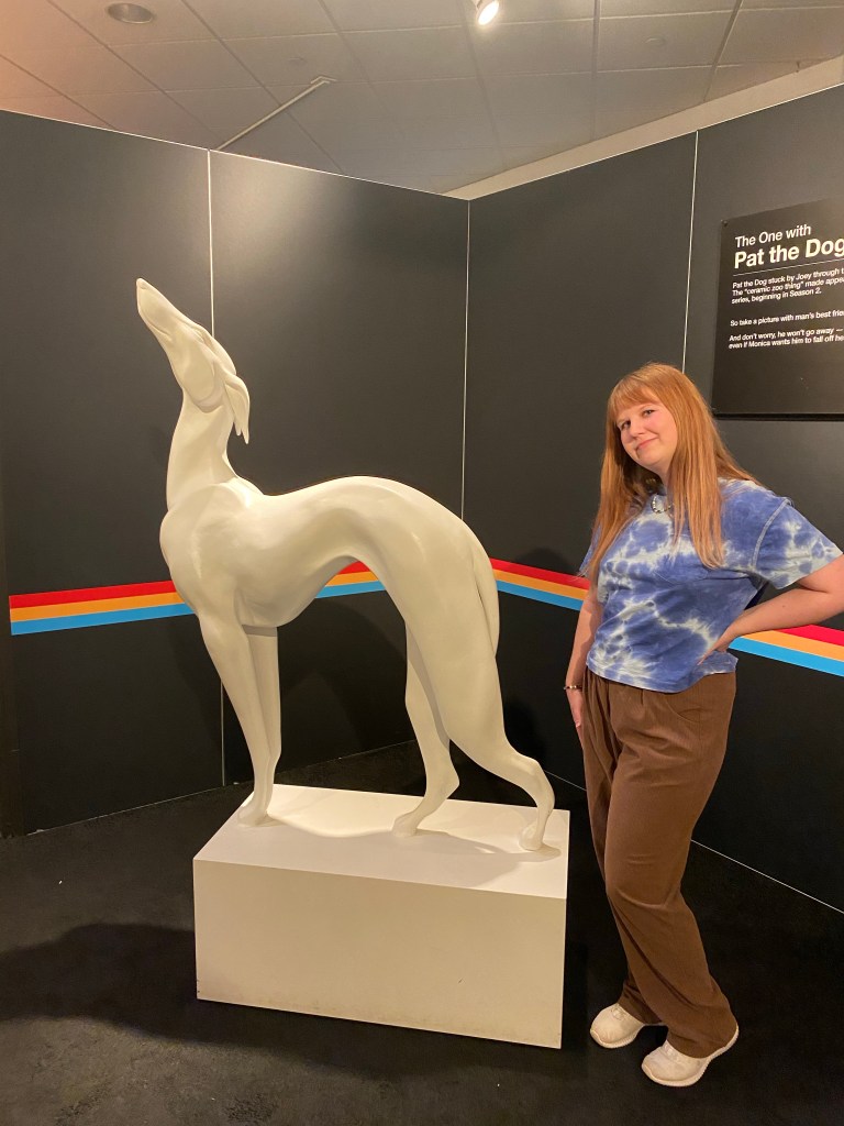 There were little “exhibits” like there would be at a museum. It had the outfits that they wore, Rachel’s hairstyles, and props like the dog statue. The funniest one was this “Who’s dated whom?” chart that shows the timeline between when all of the characters dated someone.