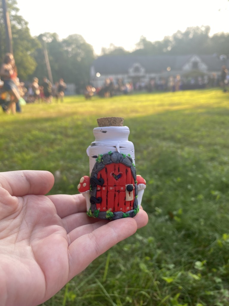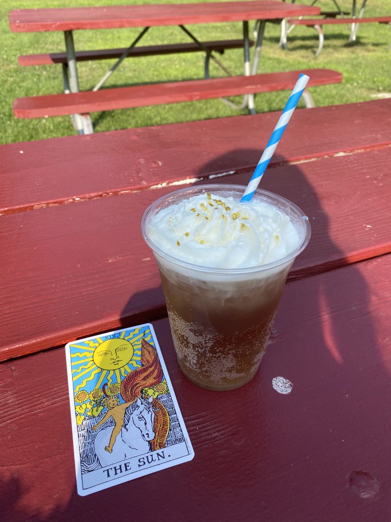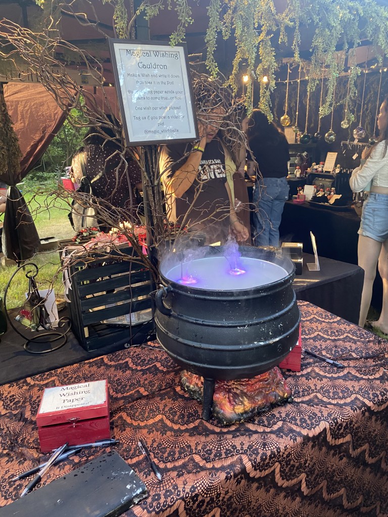 I totally made the right choice to go because I had a ball! It was the full moon in Capricorn. When entering, they had you pull a random tarot card, and I got the sun — which is the most positive card! There was a cute setup where a professional could take your photo. I headed to the potion lab for butter beer (all potions are nonalcoholic!) and then had delicious four-cheese grilled cheese for dinner. Then, there was a witchcraft ceremony that I watched. There was also some live music. Of course, tons of booths where people were selling handmade goods, and I picked up a few things. Gotta support the local witches!