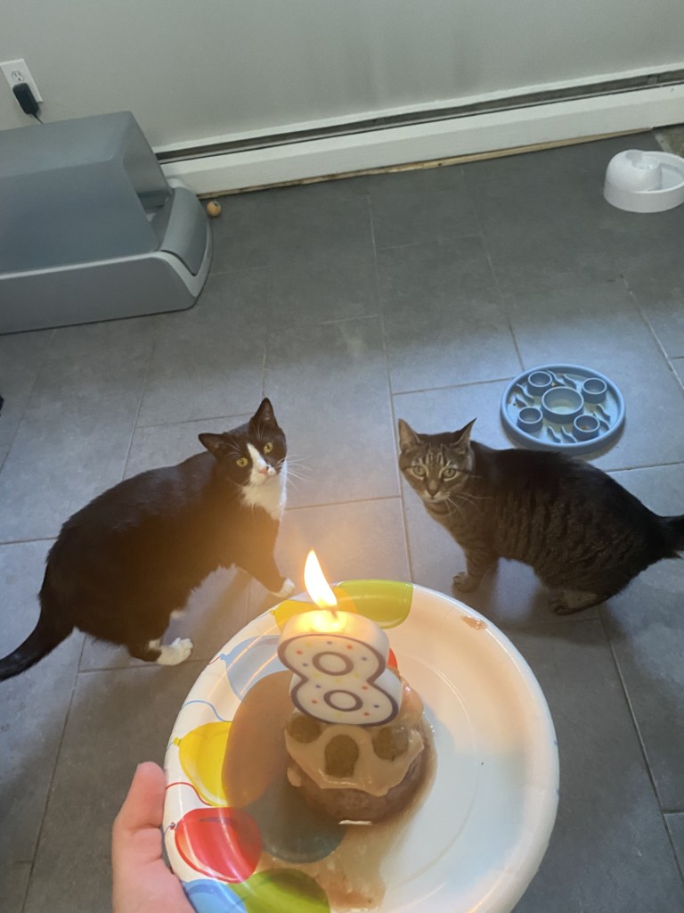 In the past couple of years, Venus has been losing weight while Luna gained a lot. It’s quite stressful managing your cat’s weights when they both have different needs. Luna likes to eat her meals all in one sitting while Venus likes to graze and go back and forth throughout the day. I’m going to try feeding Venus high-fat kitten food separately so that she can gain a pound while I keep trying to limit Luna’s intake, who is currently on a weight management high protein diet. Eyeyeye!
