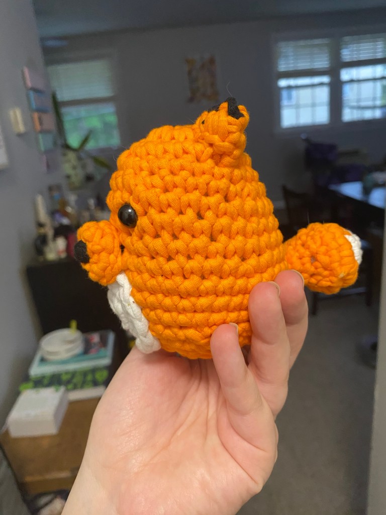 I’ve been learning how to crochet. I bought some of those Wooble kits, which teaches you how to make little animals. I made a fox. Definitely fumbled it a little, but I think, not bad for my first try. Can’t wait to make more crafts!